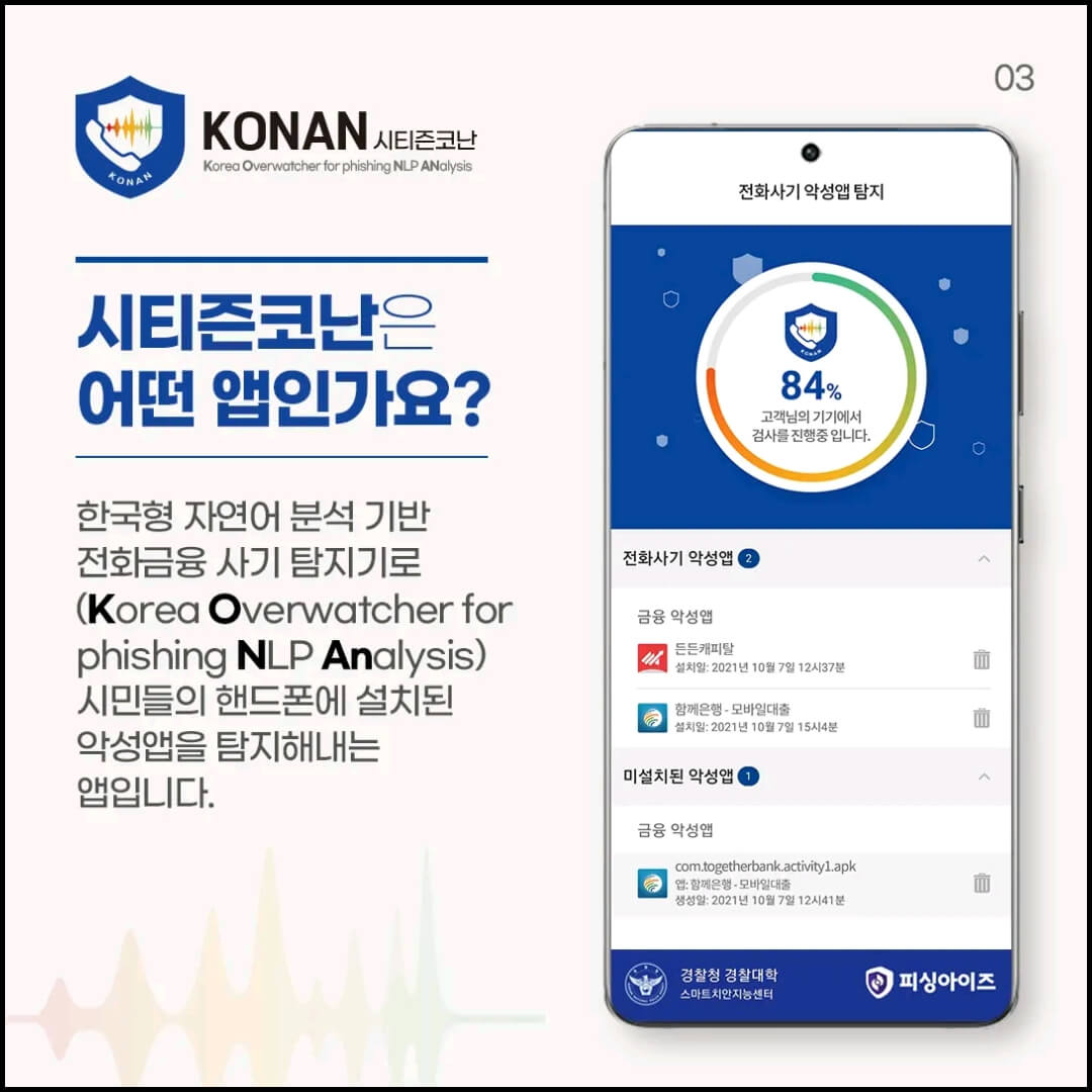 시티즌코난 앱 어플추천은 경찰청 시티즌 코난으로도 알려져 있는데요. 믿을 수 있는 보이스피싱 예방 어플을 찾으신다면 아래에서 시티즌 코난 앱 설치룰 해 보세요.